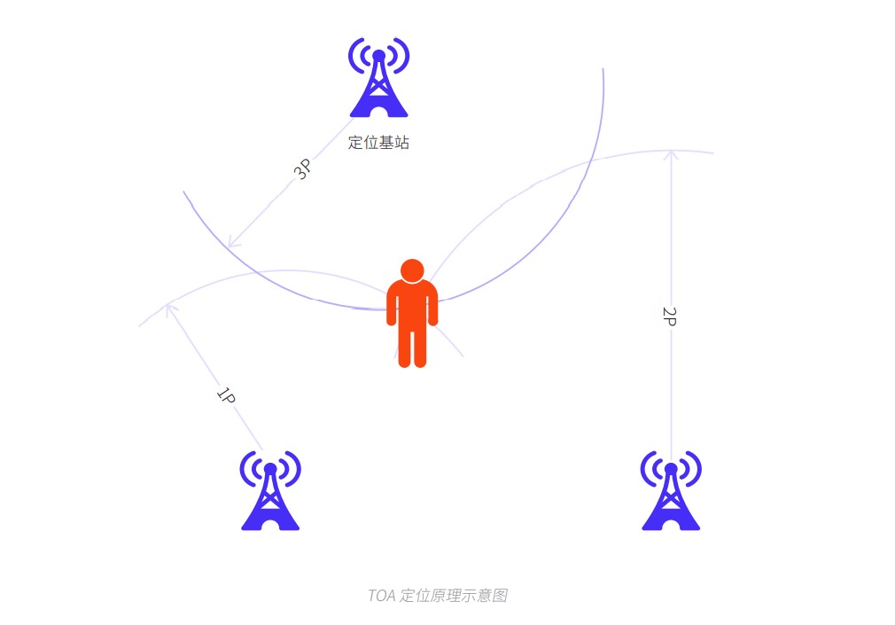 TOF 通過(guò)分別測(cè)量移動(dòng)終端與三個(gè)或更多基站之間信號(hào)的傳播時(shí)間來(lái)定位,它采用了圓周定位