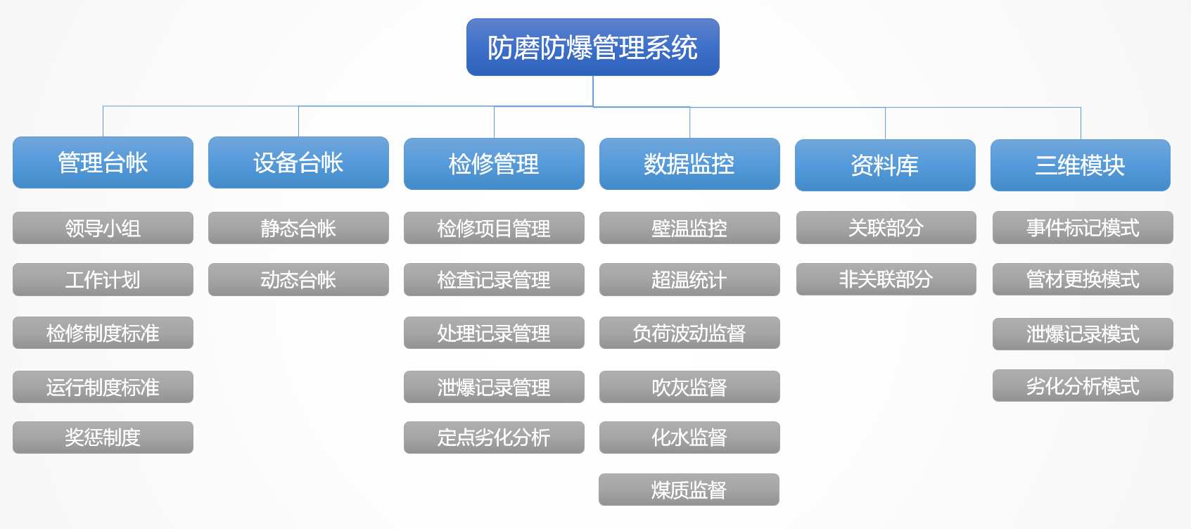 我國火力發(fā)電廠各種事故中,鍋爐事故約占發(fā)電廠總事故的70%以上,而過熱器、再熱器、省煤器、水冷壁四類管(簡稱“四管”)泄漏與爆破事故時(shí)有發(fā)生,在眾多事故中出現(xiàn)較多,約占鍋爐總事故的70%以上,成為困擾火力發(fā)電廠安全生產(chǎn)的一大難題。針對這一問題,云酷科技設(shè)計(jì)了防磨防爆可視化管理系統(tǒng)。