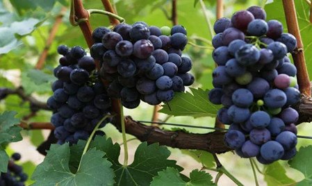 吃完午飯,小伙伴們來到了葡萄園,葡萄藤彎彎曲曲地盤在竹架上,一串串紫紅色的葡萄在綠葉中若隱若現,伙伴們穿梭在葡萄藤中采摘心儀的葡萄。親手采摘的葡萄,格外的甜。